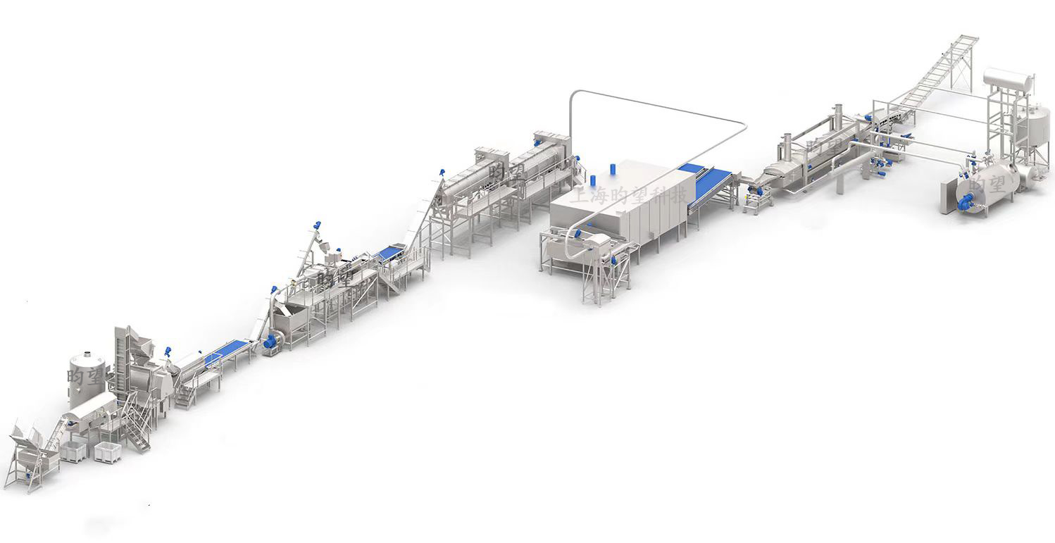 速凍薯?xiàng)l生產(chǎn)線的工藝流程如下:提升機(jī)-清洗脫皮機(jī)-挑揀線-提升機(jī)-切條機(jī)-漂洗機(jī)-漂燙機(jī)-冷卻線-風(fēng)干線-振動(dòng)篩-油炸線-脫油線-振動(dòng)篩選機(jī)-挑揀線-速凍線-包裝機(jī)。